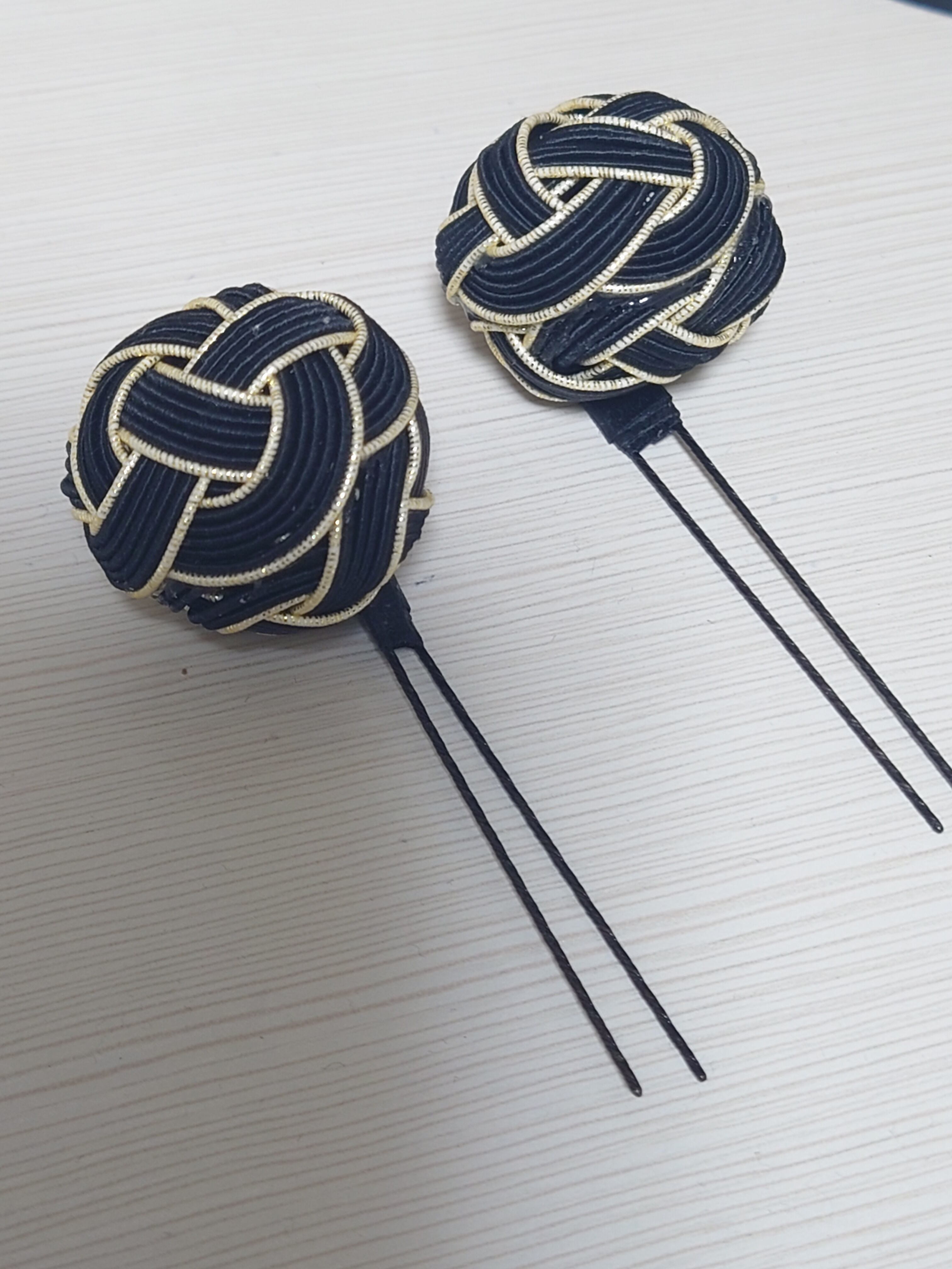 黒と金の水引で仕立てた和装のためのアクセサリーセットです。