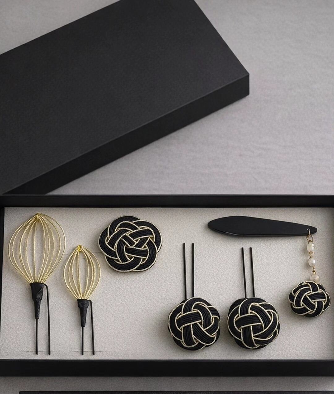黒と金の水引で仕立てた和装のためのアクセサリーセットです。