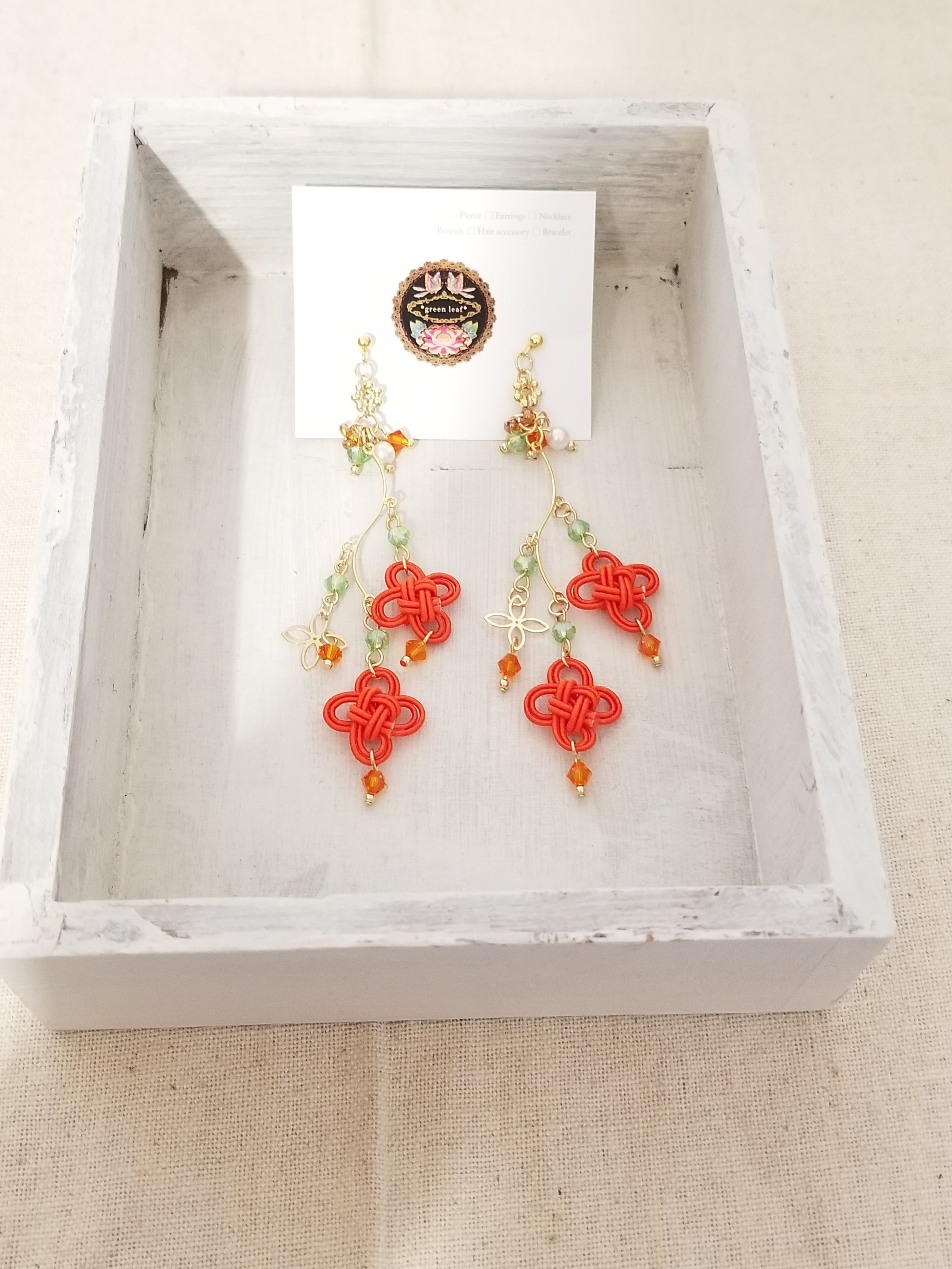 金木犀の耳飾りに用いているのは小花シリーズと同じく叶結びを使用しております。