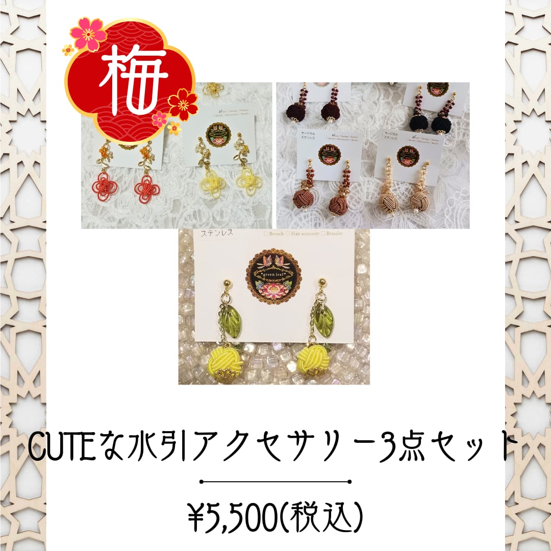 福袋2025【梅】CUTEな水引アクセサリー3点セット